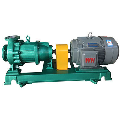 磁力驅(qū)動(dòng)離心泵(簡(jiǎn)稱磁力泵)是利用永磁聯(lián)軸器工作原理無(wú)接觸地傳遞扭矩的新型泵,當(dāng)原動(dòng)機(jī)帶動(dòng)外磁鋼轉(zhuǎn)子時(shí),通過(guò)磁場(chǎng)的作用驅(qū)動(dòng)內(nèi)磁鋼轉(zhuǎn)子同步旋轉(zhuǎn),而內(nèi)磁鋼轉(zhuǎn)子和葉輪連成一體,從而達(dá)到無(wú)接觸帶動(dòng)葉輪轉(zhuǎn)動(dòng)的目的,由于液體被封閉在靜止的隔離套內(nèi),所以磁力泵是一種全封閉、無(wú)泄漏的泵型,因此完全杜絕了填料密封、機(jī)械密封離心泵不可能避免的跑、冒、滴、漏的弊病。