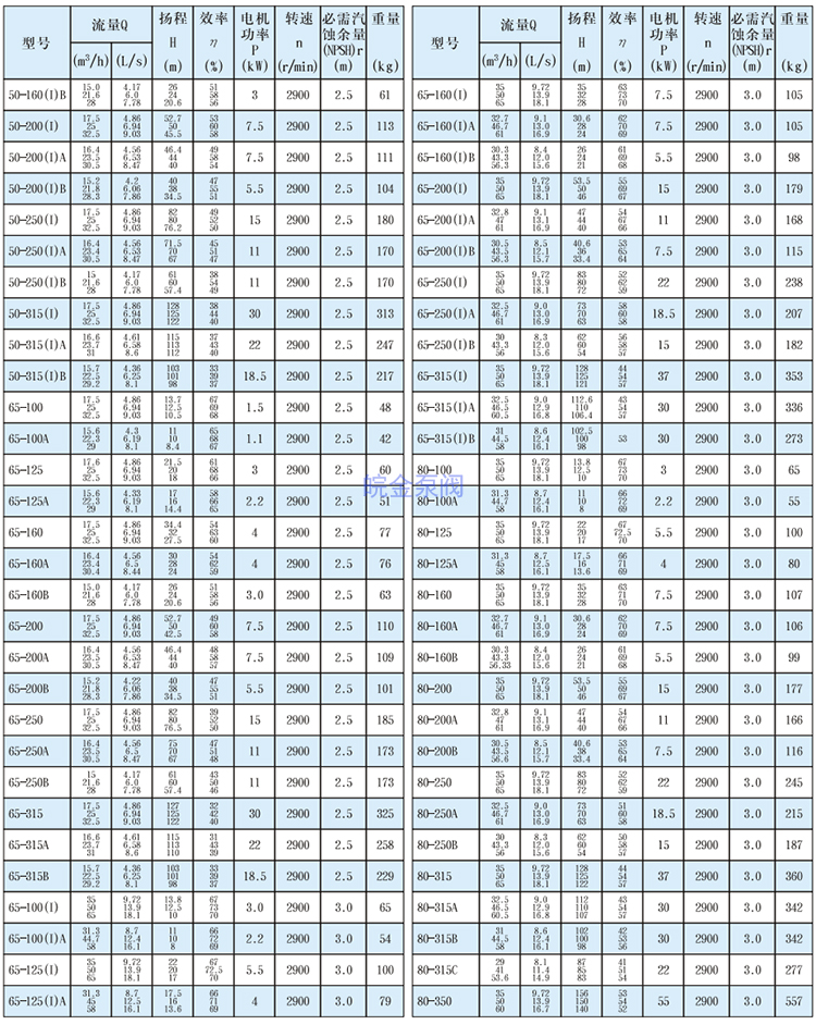 皖金泵閥不銹鋼臥式離心泵主要參數(shù):