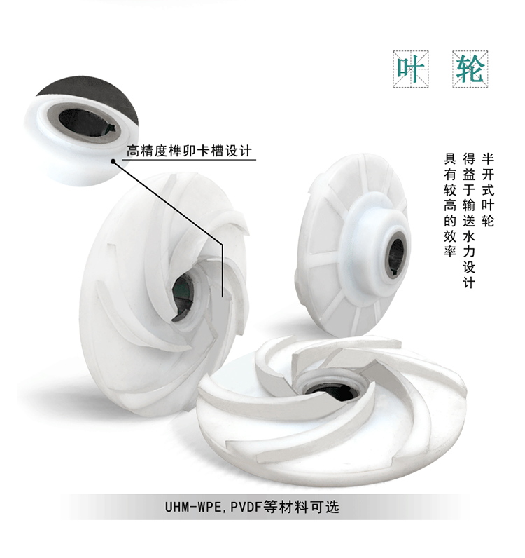 可靠厚實(shí),外面鑲包金屬夾套,結(jié)構(gòu)牢固,運(yùn)行穩(wěn)定,且能有效解決長(zhǎng)期室外運(yùn)行造成的塑料模壓件老化等不利影響。過(guò)流部件采用耐腐耐磨的UHM-WPE,PVDF等非金屬材料制造。該泵雖為半開(kāi)式葉輪,得益于成熟的水力設(shè)計(jì),具有較高的效率。采用獨(dú)特的耐顆粒集裝式單,雙端面機(jī)械密封。